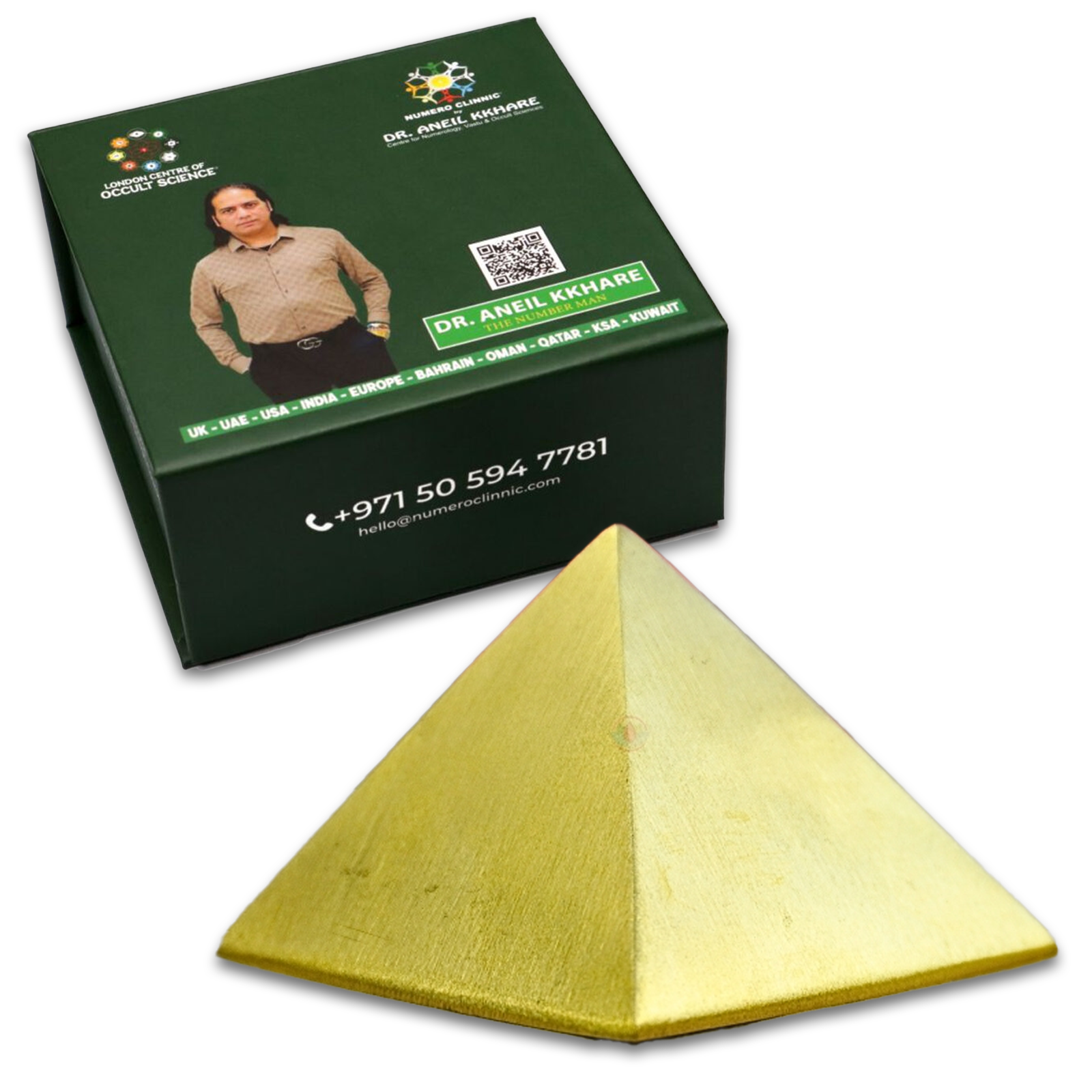 An alloy of copper and zinc is sacred brass and this material balances energy, brings luck and blocks bad energy. The form itself- a pyramid, is an icon of ascension and heavenly geometry and co-aligns your space with universe intelligence and inner harmony.