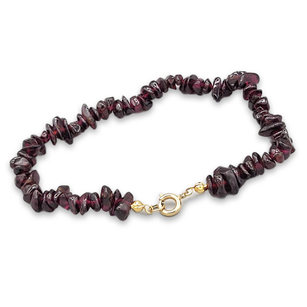 The Garnet Chips Chain Bracelet emits love, life and power. Garnet is sometimes called the Stone of Commitment and Energy and it can also revitalise the body, increase confidence and help you in emotional healing.