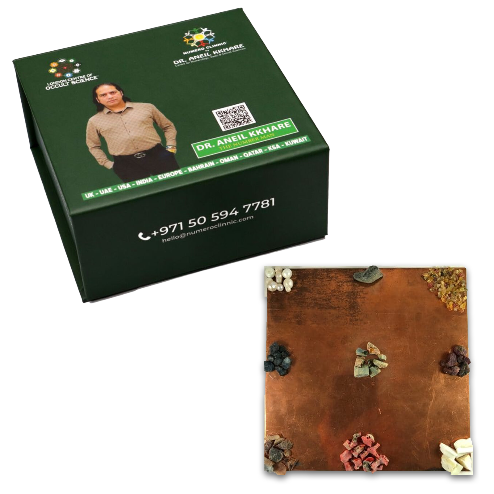 A more dramatic Vastu and energy-healing apparatus, the Nabhi Plate with Rough Gemstones is imbued with powerful energy that can either align or normalise the energy center (Nabhi or Navel Chakra) of a residence or premise. Vedic customs and the science of energy explain that the zone of the core (Brahmasthan) is the source of energy of any structure. When the center of the navel is vibrated--by a structural imbalance or pressure--the whole energy network of the space is shaken.