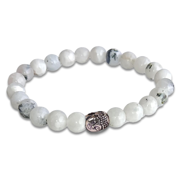 The Rainbow Moonstone Buddha Bracelet is a shimmering ally-- providing you emotional balance, intuition, and the calm intelligence of the present moment.